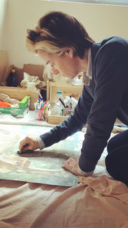 L'impressione finale è quella di trovarsi di fronte ad un acquarello, con molteplici velature di colore ma che invece è il risultato di un ripetuto procedimento di lavaggio e sfumatura operato dalle mani dell'artista senza alcun intervento pittorico.